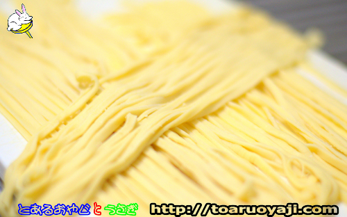 ・200g の中力粉に対し 約100ml の 卵水で・・ ・スプーン大で・・ 混ぜる ・ローラーの 調子が悪いので・・ 最近は・・ 麺棒で 伸ばしています・・(^○^) アハハ 麺棒で 十分です・・(^○^) アハハ