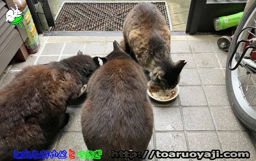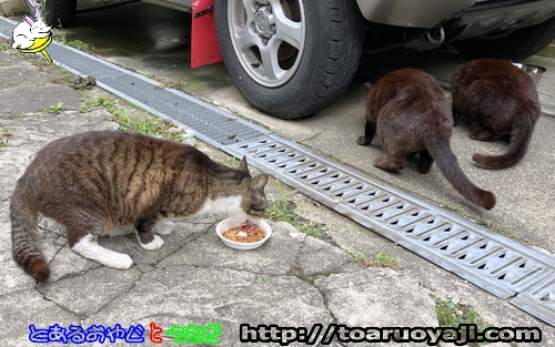 ・さぁ・・ ごはんだよ・・ ・雨なので・・ 玄関先で・・(^○^) アハハ ・