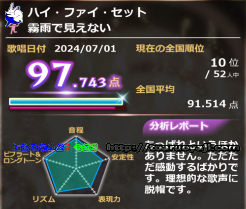 ・ ・ 6月の とある 雨の午後 は・・ 当然・・ お家 🎤カラオケ だぁ・・(^○^) アハハ ・しばらく・・ 歌っていないと・・ いきなり・・ 98点 台は ムズイのかなぁ・・(^○^) アハハ ・雨だからねぇ・・ 気持ちよく聞こえるのは・・ 半音上げる クリシャという技が使われているからだとか・・ でも・・ 聖子ちゃんバージョンは・・ やっぱり・・ ハズイなぁ・・(^○^) アハハ ・シタール っていう インドの弦楽器の ベンベンが 特徴的で いいなぁ・・(^○^) アハハ マサラ ラジオの・・ ガンジス河に 流す・・ ベンベケ ベンベン も・・ シタール だろうなぁ・・(^○^) アハハ ・大好きな曲です・・ やっぱり・・ スローテンポの ロングトーンが いいなぁ・・(^○^) アハハ みんなの歌 とか・・ 教科書に掲載されそうな・・ 感じかなぁ・・ もの悲しさが・・ 好きです・・ 感情込めると・・ 即 五角形に 反映されるのも・・ 笑えますねぇ・・(^○^) アハハ ・ユーミン バージョンも 決して悪くはないけど・・ 私は・・ こっち かなぁ・・(^○^) アハハ 山本潤子さん・・ ・これも・・ ねぇ・・(^○^) アハハ あまり 歌った記憶はないけど・・ 覚えていますねぇ・・(^○^) アハハ 麗美 バージョンも・・ よかったなぁ・・(^○^) アハハ ・この季節は・・ 歌いたくなりますねぇ・・(^○^) アハハ インパクトが強い いい曲ですねぇ・・ 紙ふうせん 冬が来る前に どこか似ている感じ・・(^○^) アハハ ・スピッツは・・ こんな・・ キラキラした曲が いいなぁ・・(^○^) アハハ 詩が 笑えますねぇ・・(^○^) アハハ ・この曲だけは・・ 音程が 終始 イマイチなのにもかかわらず・・ 何故か・・ 結果オーライだぁ・・(^○^) アハハ ダメダァ・・ って思って・・ 毎回 アウトロは強制終了 しています・・(^○^) アハハ 勝ちに不思議の勝ちあり・・ 負けに不思議の負けなし ノムさん語録ねぇ・・ このフレーズが・・ 浮かんでは・・ 沁みますねぇ・・(^○^) アハハ s おやすみなさい・・(*^ー^)ノ~~☆